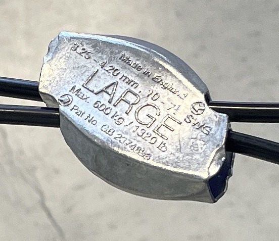 Support wires pass through the input hole of the zip tensioner, loop through the hook eye in the net support brackets, and then return through the output hole of the zip tensioner.  The output hole is self-cinching. The support wire cannot pull out without a release pin insertion.
